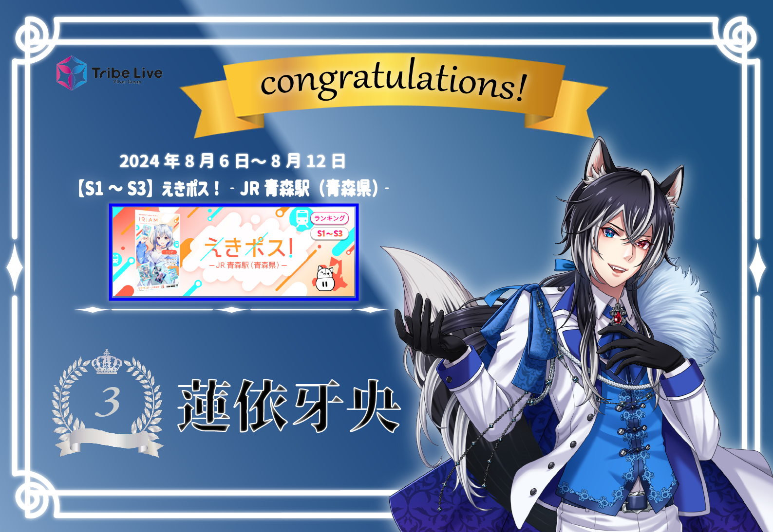 【入賞報告】 2024 8/14 2024年8月14日 8/6~8/12開催の【S1~S3】えきポス!‐JR青森駅(青森県)‐にて、 蓮依牙央さん(@HasuiGao_tl)が3位に入賞致しました。 おめでとうございます! 応援して下さった皆様、ありがとうございました。 未分類 よかったらシェアしてね! URLをコピーしました! URLをコピーしました! 【入賞報告】 【入賞報告】 関連記事 お知らせ 2023年2月7日 【入賞報告】 2024年5月17日 【入賞報告】 2024年5月27日 【入賞報告】 2024年5月27日 【入賞報告】 2024年5月31日 【入賞報告】 2024年6月12日 【入賞報告】 2024年7月29日 【入賞報告】 2024年8月4日
