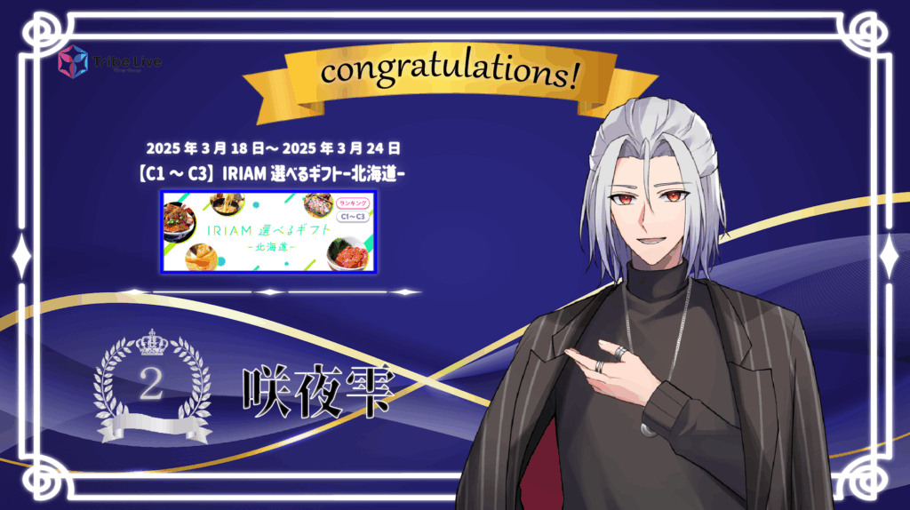 2/25~3/3開催の【C1~C3】Enjoy IRIAM 大正しらすにて、 甘崎祀さん(@amaturi_ama)が3位に入賞致しました。 おめでとうございます! 応援して下さった皆様、ありがとうございました。